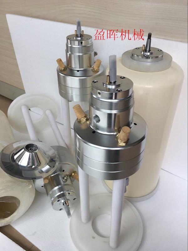 氣動高速霧化器(風動馬達、噴漆馬達),是Ω圓盤型自動靜電自動噴漆機主要組成部件之一。霧化器被垂直固定安裝在升降桿上;通過往復機上下運動完成噴涂作業。盈暉氣動高速霧化器在壓縮空氣驅動下轉速高達45000rpm (帶載16000r/min)。轉軸上安裝一個鋁合金圓盤(靜電霧化盤)。涂料由定量泵浦輸送到霧化圓盤內壁,在高速離心旋轉作用下涂料油漆由霧化盤底部小孔高速甩出迅速產生微小霧狀顆粒向周邊擴散;在霧化器上接通負極高壓靜電,使漆霧顆粒涂料帶有高壓靜電並迅速向工件表面吸附(接地正極),形成均勻涂層從而達到噴涂目的。